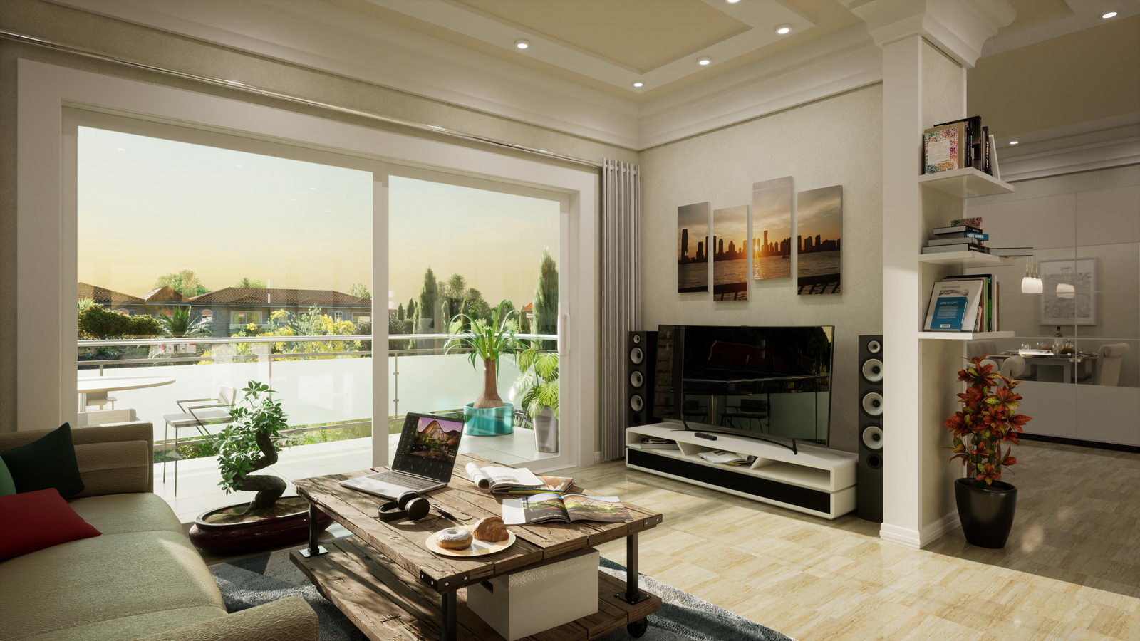 Kleiner Hinweis: Um einen ersten Eindruck der dargestellten Musterwohnung zu erhalten, empfehlen wir die Ansicht unserer Visualisierung auf einem Tablet oder PC-Monitor. Für eine Vergrößerung der Bilder klicken Sie bitte einfach auf das gewünschte Bild. Bei Interesse und Fragen zu unserem Bauprojekt zögern Sie nicht uns telefonisch zu kontaktieren.