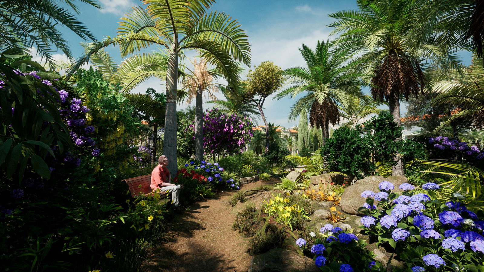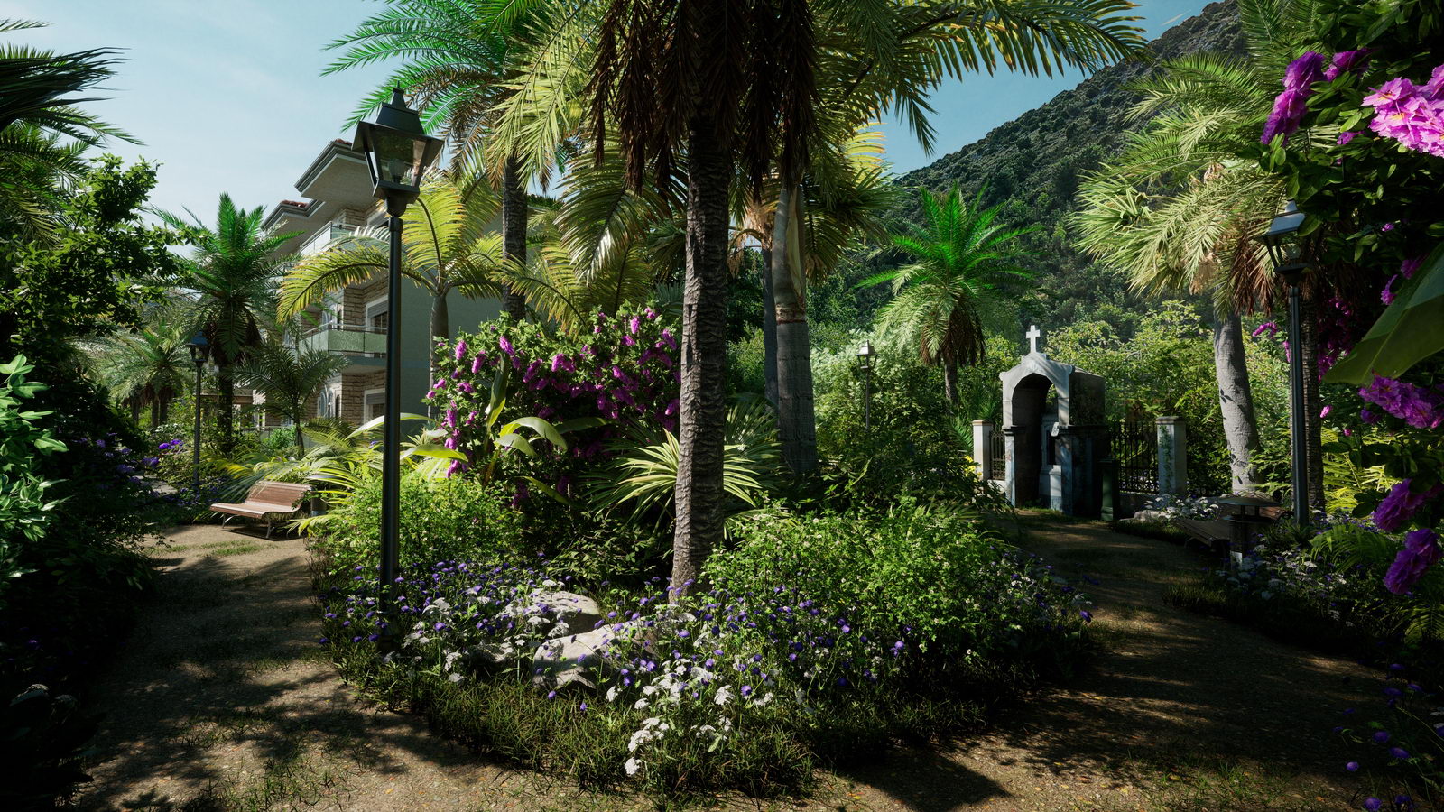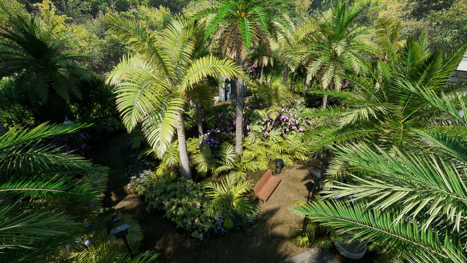 Der Palmengarten mit seinen naturbelassenen Wegen und verschiedener Bepflanzung aus Blumen, Sträuchern und Bäumen, lockt nicht nur den kleinen Spaziergang durch das tropisches Ambiente, sondern zeigt sich auch als ein schöner Treffpunkt für Gespräche auf gemütlichen Sitzbänken oder als kleine Ruhezone für die Besinnlichkeit.